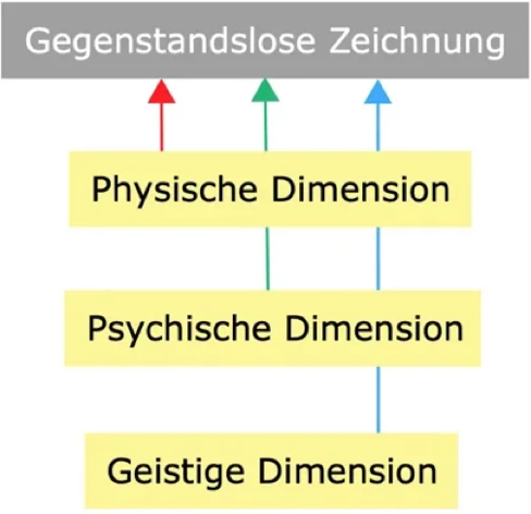 Ich verwende den Begriff Dimension anders, als es in der Physik, in der Mathematik und in der Geometrie üb-lich ist. In einem anderen Kontext bildnerischer Analysen habe ich mit dem Begriff «Dimension» unterschied-liche bildnerische Freiheitsgrade des Ausdrucks und die damit zusammenhängenden visuellen Erscheinungs-formen bezeichnet. Diese Freiheitsgrade waren auf eingeschränkte bis uneingeschränkte Aspekte des bild-nerischen Ausdrucks und auf eine damit korrespondierende Vermittlung von Sinn bezogen. Später wurde mir bewusst, dass sich diese Freiheitsgrade nicht nur auf den bildnerischen Ausdruck beziehen, sondern dass sie darüber hinaus auch den Menschen insgesamt, das Leben und die Welt betreffen. Es ist demnach eine Festle-gung, wenn ich eine Dimension als Freiheitsgrad des Erlebens, des Handelns und den damit zusammen-hängenden zerebralen Zustandsmöglichkeiten definiere, die sich physisch, psychisch und geistig äußert und verwirklicht, sodass drei Dimensionen zu unterscheiden sind: eine physische, eine psychische und eine geis-tige Dimension. Das ergibt ein dreidimensionales Modell des Seienden, welches sich in beobachtbaren Phä-nomenen verwirklicht.