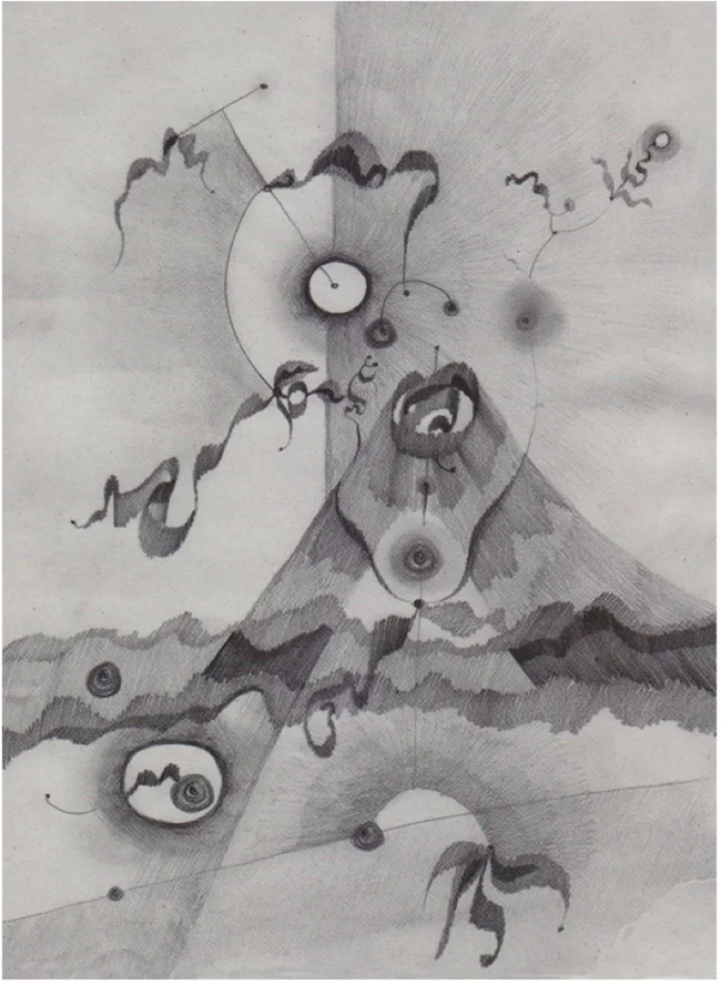 Kein Bild entwickelt sich von allein aufgrund seiner physischen Dimension, aus deren materiellen Elementen es besteht. Es muss darüber hinaus etwas geben, wodurch aufgrund dieser physischen Voraussetzung ein ge-staltbildender Prozess entsteht. Das ist zweifelsfrei die Bewegung. Aber auch die für eine Zeichnung erfor-derlichen Bewegungen kommen nicht wegen des physischen Materials zustande und deshalb muss es einen über die physischen Voraussetzungen hinausreichenden oder besser gesagt, einen in diese Voraussetzungen hineinreichenden Einfluss geben. Dieser Einfluss kommt jedoch nicht, wie man meinen könnte, durch das physische Gehirn, seinen neuroelektrischen Impulsen und synaptischen Vernetzungen zustande. Der zere-brale chemisch-physikalische Apparat kennt keine Absichten, kein Wollen, weder Ausdrucks- noch Gestal-tungsziele. Die Welt der Elementarstrukturen und der elektromagnetischen Felder, der zerebralen Materie, hat keine Interessen.