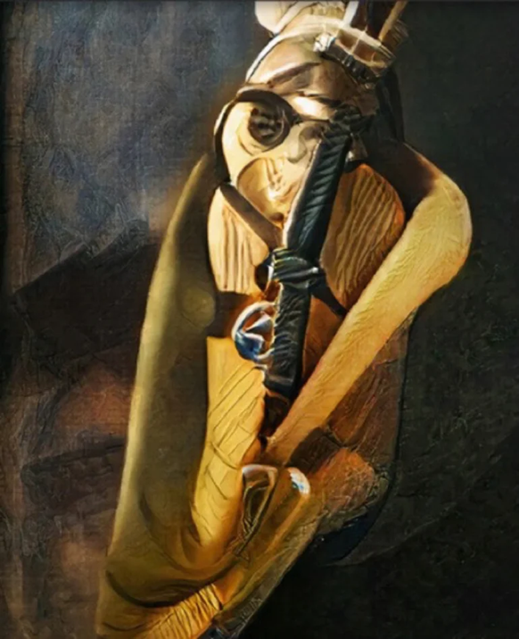 Ein mit KI hergestelltes Bild vermag auf den ersten Blick den Eindruck zu erwecken, dass es mit einem vom Menschen geschaffenen Kunstwerk zu vergleichen wäre (Bild 8). Diese Behauptung ist jedoch der Ausdruck einer pseudowissenschaftlichen Täuschung, die suggeriert, eine KI würde ohne die millionenfach von Men-schen geschaffenen gescannten Bilder in der Lage sein, ein originäres Bild zu generieren. Das heißt, jedes von einer KI hergestellte Bild ist das Produkt einer kulturellen Aneignung ästhetischer Phänomene, an denen mehr und vor allem, andere Dimensionen, beteiligt waren als ausschließlich Rechenleistung. Selbstverständ-lich lassen sich mit KI ästhetische Bilder generieren, wenn man sich auf bereits vorhandene, von Menschen geschaffene Bilder beziehen kann und von der KI verlangt, Kombinationen herzustellen. Das Kunstverständ-nis hat sich bedauerlicherweise vom schöpferischen Ausdruck eines Individuums weg entwickelt, sodass es sich nur noch auf mehr oder weniger dekorativ ästhetische Attribute oder kognitiv provozierende Zustände beschränkt. Diese, den Prozess betreffende Bedeutungslosigkeit, kann als essenzielles Merkmal für eine KI gelten. Wenn man Bilder, von nicht vom Menschen geschaffenen, Gebilden der Natur, in ein Rechensystem eingibt, lassen sich beliebig viele Kombinationen denken, die eine KI aufgrund einer Anweisung bildnerisch realisieren kann (Bild 9). Die Meinung, eine KI würde dann etwas dem menschlichen Ausdruckshandeln an-aloges geschaffen haben, wäre jedoch eine grobe Verkennung der Tatsachen.