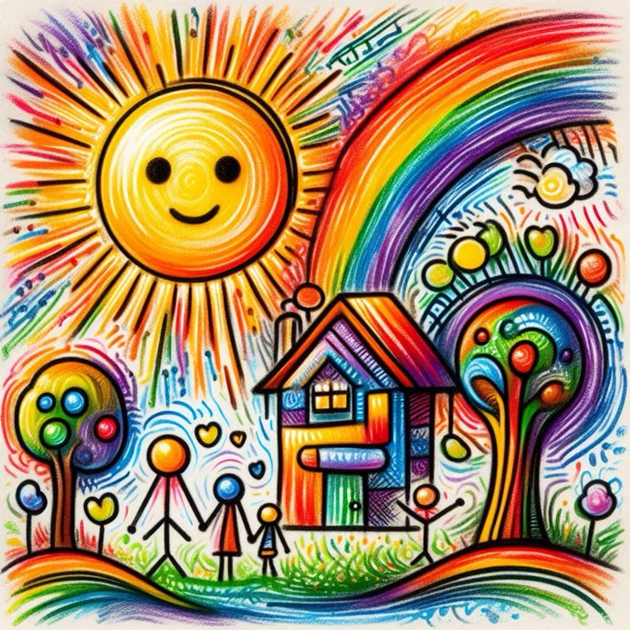 Wenn man das Prinzip verstehen will, das einer KI zugrunde liegt, reicht es, ihr den Befehl zu geben, eine Kin-derzeichnung zu generieren. Dieses Prinzip tritt umso deutlicher in Erscheinung, wenn es sich um eine min-der komplexe durchschnittliche KI handelt. Das vorliegende Beispiel (Bild 10) ist das Ergebnis eines KI-generierten Graphikprogramms, welches auf fortschrittlichen technischen Modellen basiert, von denen es heißt, sie sind dafür entwickelt worden, um kreative Bilder zu generieren, die den vorgegebenen kognitiven Inhalten entsprechen. In diesem Versuch hatte die KI den Output ihrer Zeichnung mit der abschließenden Bemerkung versehen: Kinderzeichnungen haben immer diese unbeschwerte Kreativität, die einfach bezau-bernd ist. Interpoliert man dieses zugegebenermaßen einfache Beispiel, lässt sich die Gefahr erkennen, dass man von Menschen, die von der Idee einer den Menschen ersetzenden KI besessen sind, vereinnahmt wer-den, derart, dass das essenzielle Menschliche im Menschen von Rechensystemen eliminiert wird. Das hätte man dann solchen Wissenschaftler:innen zu verdanken, dir blind sind, weil sie nicht sehen wollen. Es ist ein schleichender und, wie ich annehme, unumkehrbarer Prozess.