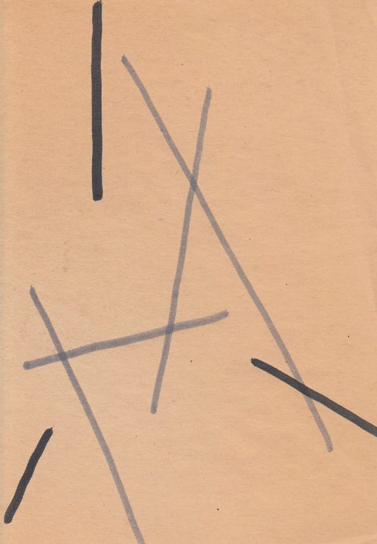 Diese Zeichnung (Bild 11) besteht aus sieben Linien. Die kompositorische Anordnung dieser Linien im Flä-chenraum, kann physikalisch nicht erklärt werden, wenn man weiß, dass die, dieser Ordnung zugrunde lie-gende Intention einer dynamischen und zugleich harmonischen Konfiguration, der Ausdruck eines wahrneh-menden Empfindens relationaler Beziehungen ist. Diese Beziehungsunion ist zusätzlich noch dadurch kom-plexifiziert, weil jede der sieben Linien mit einem Grauwert verbunden ist, die das qualifizierende Empfinden des Betrachtenden animieren. Das Bild ist eine nicht materielle, psychische und geistige Interaktionen, des-sen Authentizität sich nicht berechnen lässt. Es ist die Gesamtheit aller zerebralen Funktionen des physi-schen Gehirns und deren intrazerebralen Vernetzungen, aufgrund derer sich die bewussten und unbewuss-ten Entscheidungen im Verhalten, Empfinden und Erleben im Raum-Zeit-Kontext zu einer kongruenten Kon-figuration verwirklicht haben. Dieser Verwirklichung lag ein Prozess zugrunde. Vergleicht man die Anord-nung der sieben Linien mit dem Wurf von Mikado-Stäbchen, auf deren Lage man keinen Einfluss hat, zeigt sich ein Unterschied zwischen einem blinden, statistisch berechenbaren sich ereignen und einer gestalten-den Handlung. Dem zufälligen Übereinander- und Durcheinanderfallen von Stäbchen würde kein Prozess ei-nes wahrnehmenden und vergleichenden Empfindens zugrunde gelegen haben, dieser Zeichnung aber schon.