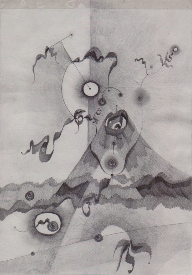 Beiden Zeichnungen liegen unterschiedliche Ausdruckshandlungen zugrunde, die beim Sehen zu psychi-schen und geistigen Wirkungen werden. Denn nichts ist ohne Wirkung, ob man sich dessen bewusst ist oder nicht. In den gegenstandslosen Beziehungen der physisch sichtbaren Attribute und dem relativen aufeinan-der Bezogen-Sein im Kontext der Einheit des Bildganzen, haben sich nicht sichtbare psychische und geistige Empfindungen, im physisch Sichtbaren verwirklicht.