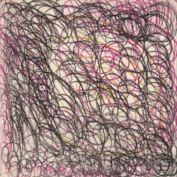 Betrachten wir diesen Zusammenhang am Beispiel des gegenstandslosen Zeichnens. Drei Personen haben die Aufgabe bekommen, ihren aktuell empfundenen Zustand mit Farbkreiden gegenstandsfrei zum Ausdruck zu bringen (Bilder 1 bis 4). Wie man sehen kann, sind drei Zeichnungen entstanden, die sich aufgrund ihrer Subjektivität des Selbsterlebens und des Ausdrucks deutlich voneinander unterscheiden. Zugleich sind diese drei Bilder aber auch intersubjektiv. Sie zeigen nämlich, dass jeder an der Aufgabe Beteiligte dem Prinzip nach imstande war, ein Bild zu zeichnen. Diese Fähigkeit des intrazerebralen Ich, einen Zustand des Selbster-lebens gegenstandslos zeichnen und äußern zu können, ist eine intersubjektive, eine allen Menschen mög-liche zerebrale Voraussetzung für subjektive Ausdruckshandlungen.