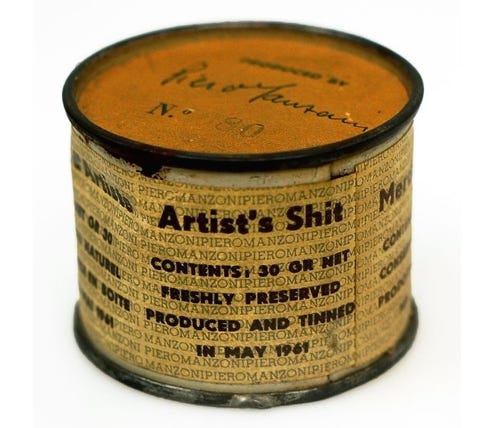 Man kann nicht sagen, was „Kunst“ ist. Die einzig vernünftige Definition von Kunst ist die Aussage, alles ist Kunst, was Menschen als Kunst bezeichnen. Das kann nahezu alles sein. Nur dann kann man verstehen, dass Künstler ihre eigenen Fäkalien in Konservendosen verpacken und in namhaften Galerien verkaufen können. Der italienische Künstler Piero Manzoni hat seine eigenen Exkremente in 90 Dosen zu je 30 Gramm abgefüllt und als „merda d’artista“ also als „Künstlerscheiße“ verkauft. Bei einer Kunstauktion im Hause Sothebys erzielte eine solche Dose den Preis von über 90.000 britische Pfund (Bild 1).